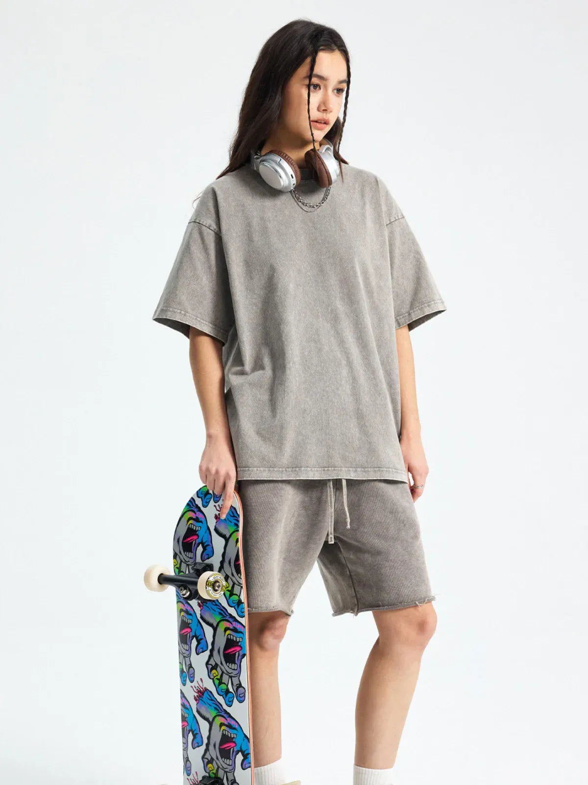 Custom Anime Character Gray Washed T-Shirt - Personalized Anime Style TeeSale