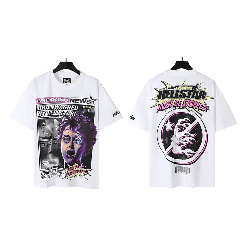 Hellstar Breaking News Brainwashed Graphic T-Shirt with Retro Comic PrintSale