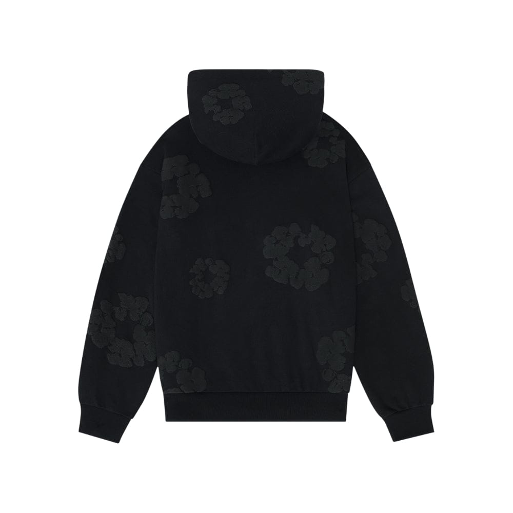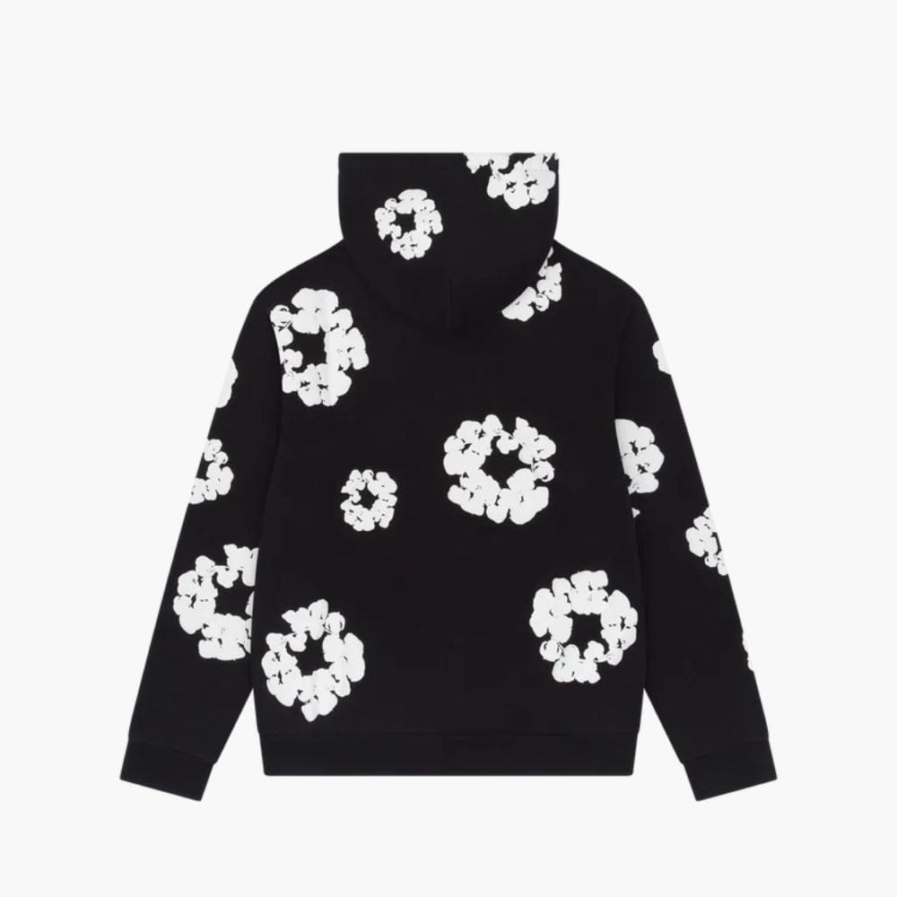 Black “Cotton Wreath” Denim Tears Hoodie – White Floral Ring Print Streetwear Hoodie