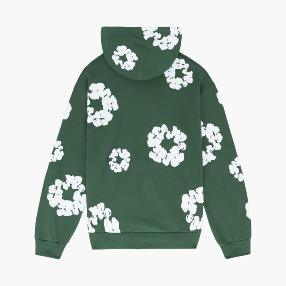 Forest Green “Cotton Wreath” Denim Tears Hoodie – White Floral Print Streetwear PulloverSale