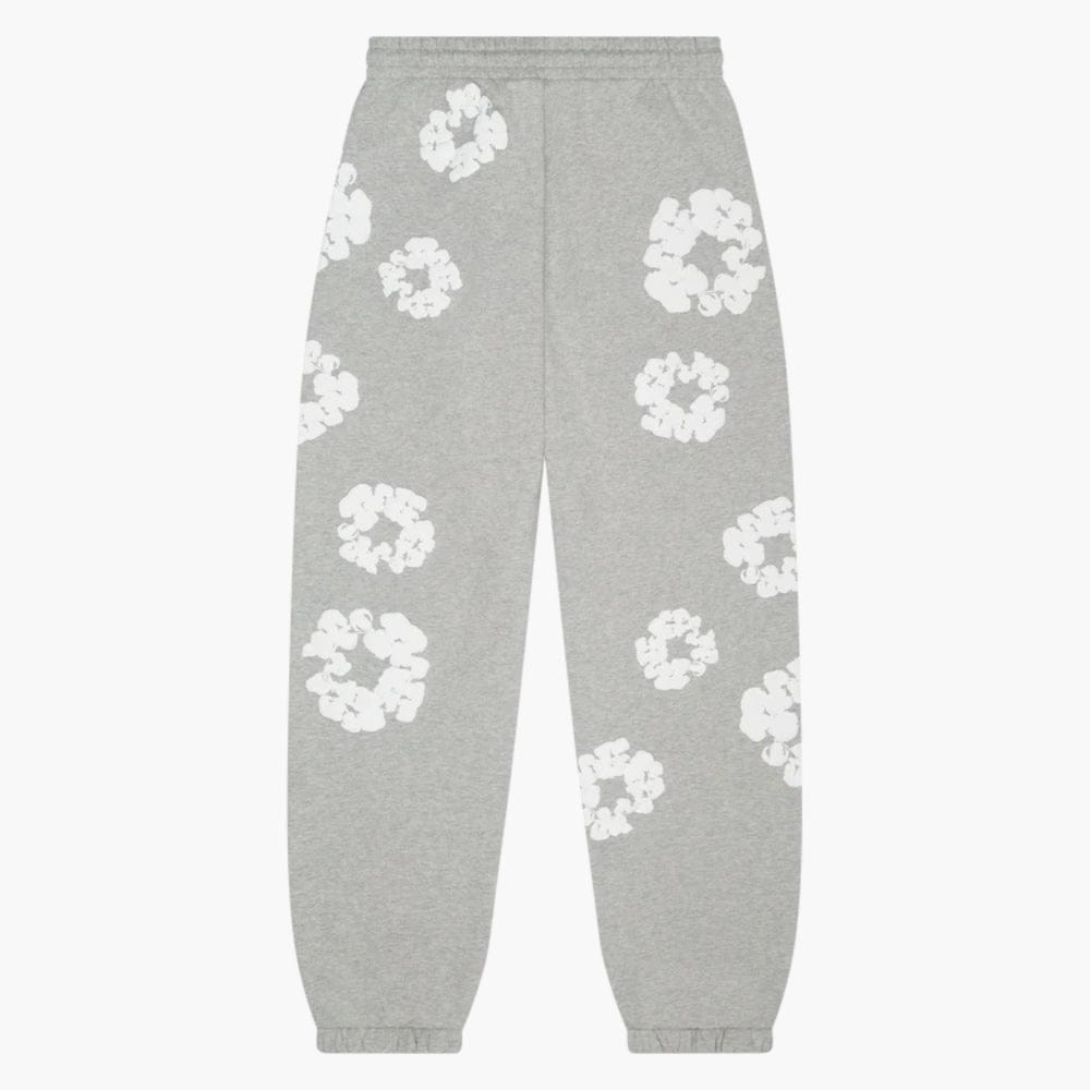 Grey “Cotton Wreath” Denim Tears Sweatpants – White Floral Print Streetwear PantsSale