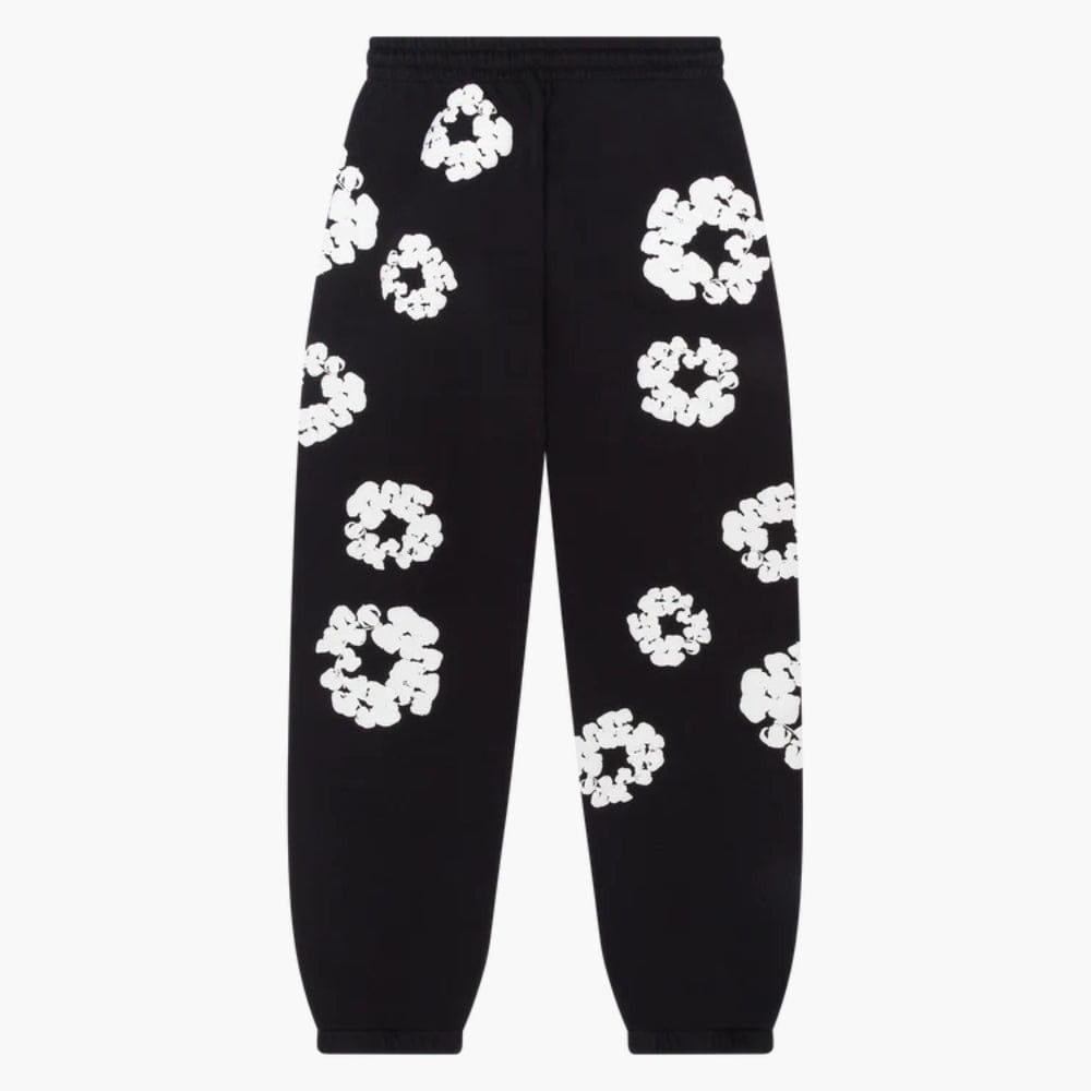 Black “Cotton Wreath” Denim Tears Sweatpants – White Floral Print Streetwear PantsSale