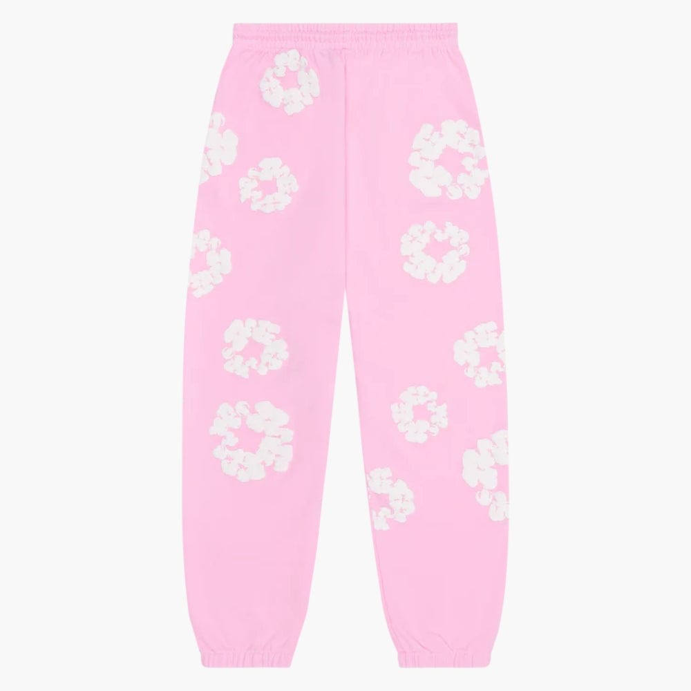 Pink “Cotton Wreath” Denim Tears Sweatpants – White Floral Print Streetwear Pants