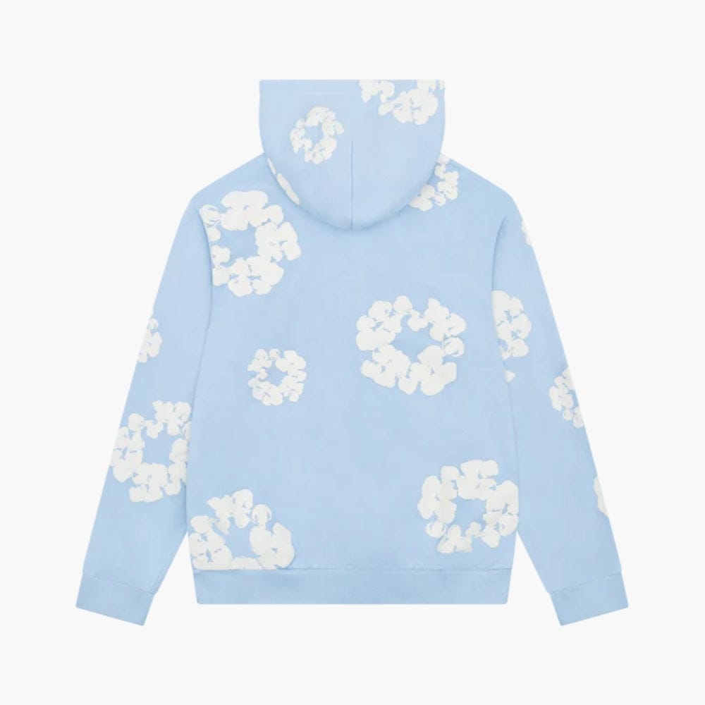 Light Blue “Cotton Wreath” Denim Tears Hoodie – White Floral Print Streetwear PulloverSale