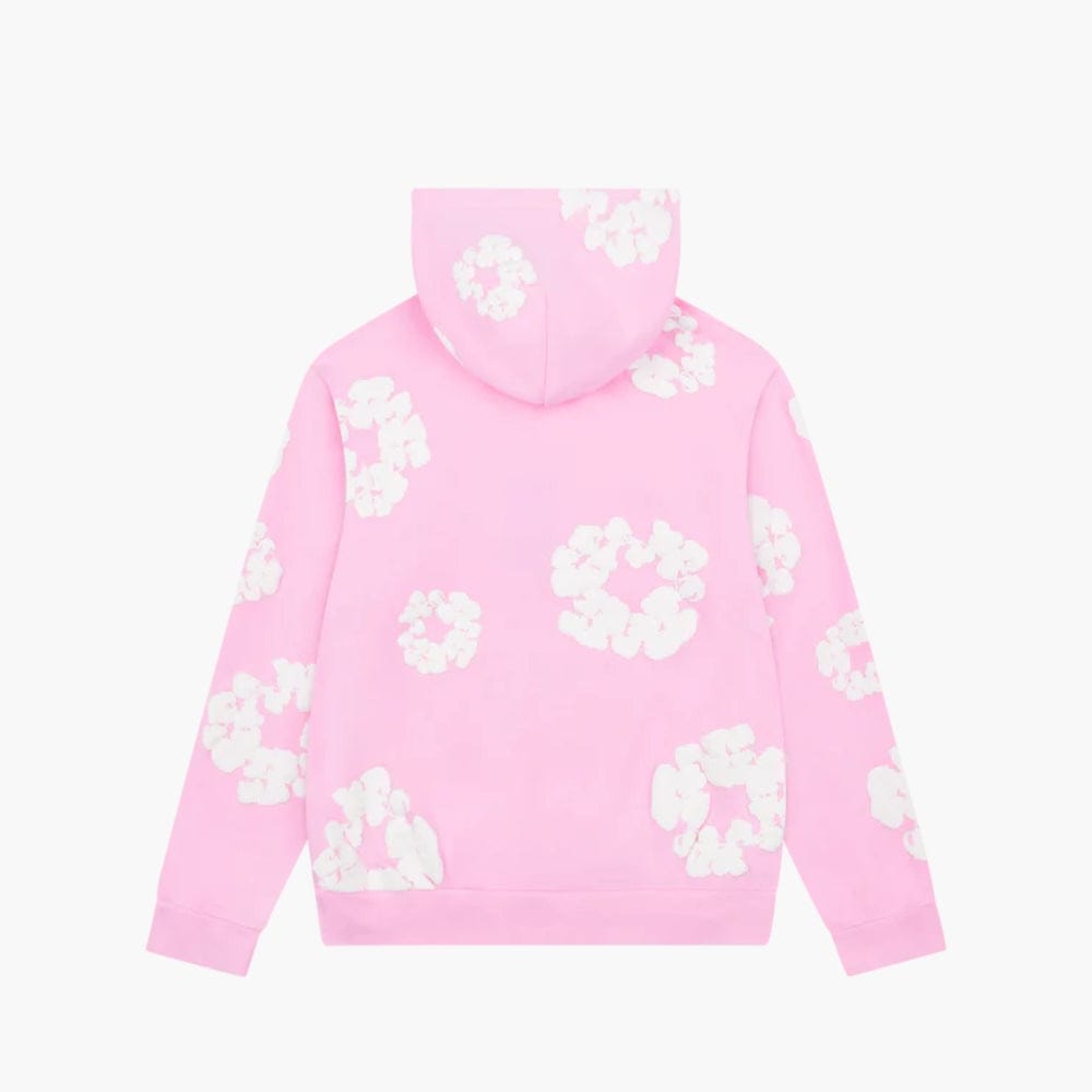 Pink “Cotton Wreath” Denim Tears Hoodie – White Floral Print Streetwear Pullover