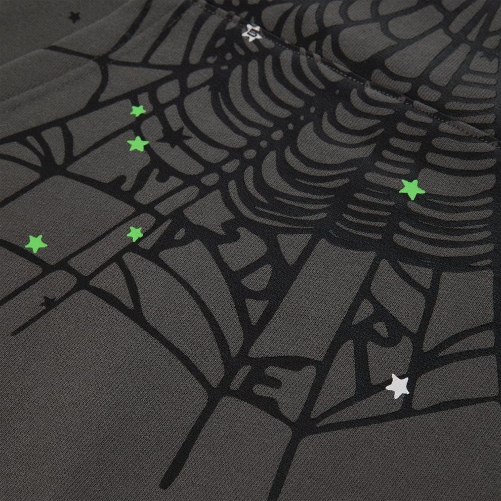 Sp5der Sweatpants – Unisex Dark Grey Cotton Sweatpants with Green Side Logo and Star PrintSale