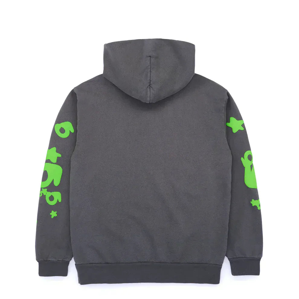 Sp5der 440GSM Heavyweight Hoodie – Grey & Neon Green Star Graphic Oversized SweatshirtSale