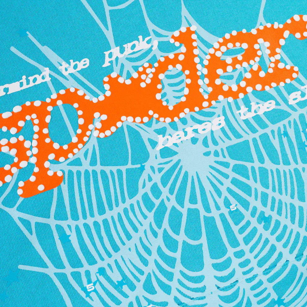 Sp5der “Nevermind the Spider” Hoodie – Sky Blue 440GSM Heavyweight Streetwear Pullover