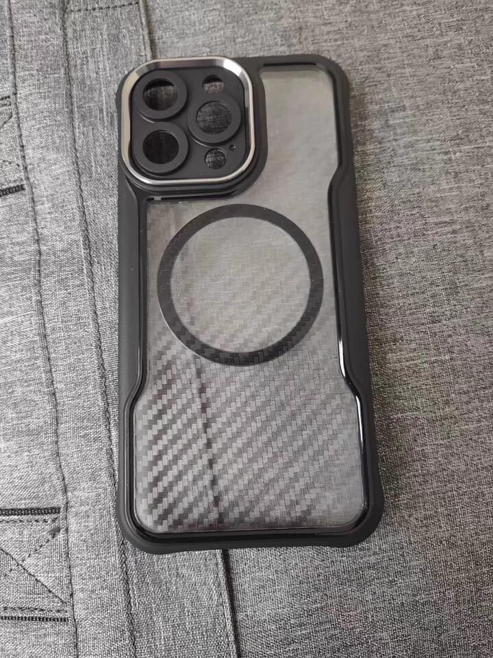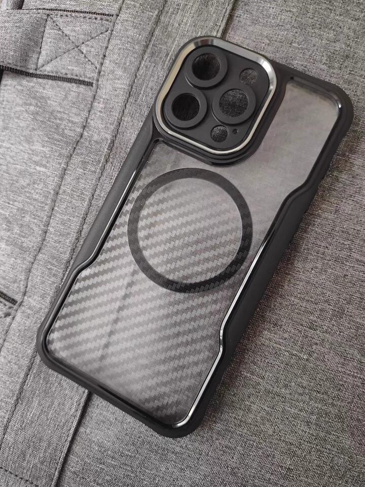iPhone 16 Pro Max ケース - 半透明カーボンファイバー + PC 素材、MagSafe 対応、耐衝撃エアバッグコーナー、マット仕上げ
