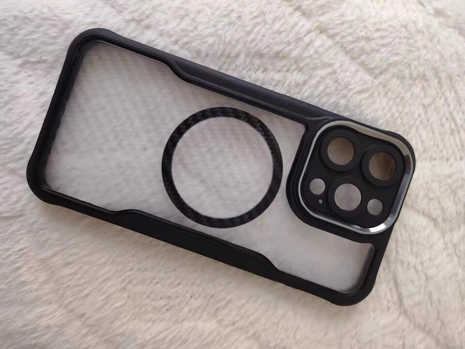 洗練された美しさと優れた機能性を兼ね備えたユニークな半透明デザインを特徴とするこのプレミアム カーボン ファイバー MagSafe ケースで、iPhone 16 Pro Max をグレードアップしましょう。カーボン ファイバーの質感はモダンなタッチを加えるだけでなく、グリップ力も強化し、携帯電話をしっかりと手に保持します。